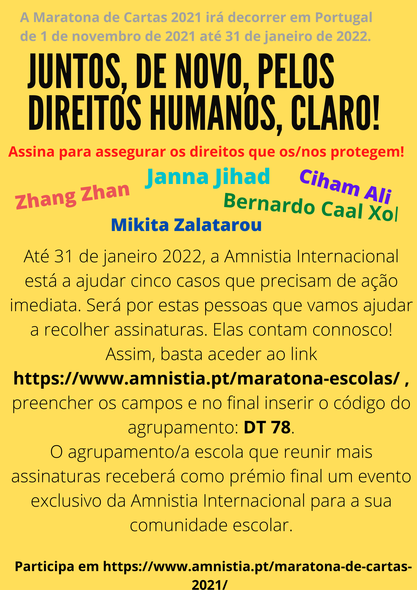 Amnistia Internacional on 15 dezembro 2021. Maratona de cartas Ativismo ativo e solidário pelos Direitos Humanos (clique na imagem para ampliar)